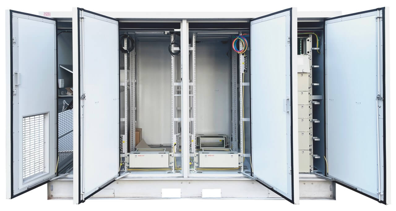 内部可集成供配电、空调制冷、电池备电、动环监控管理等物理基础设施,将网络主设备收纳全封闭机柜内。同时设计不同的美化外观,可满足城市、小区、公园、景区等特殊环境的建站需求。